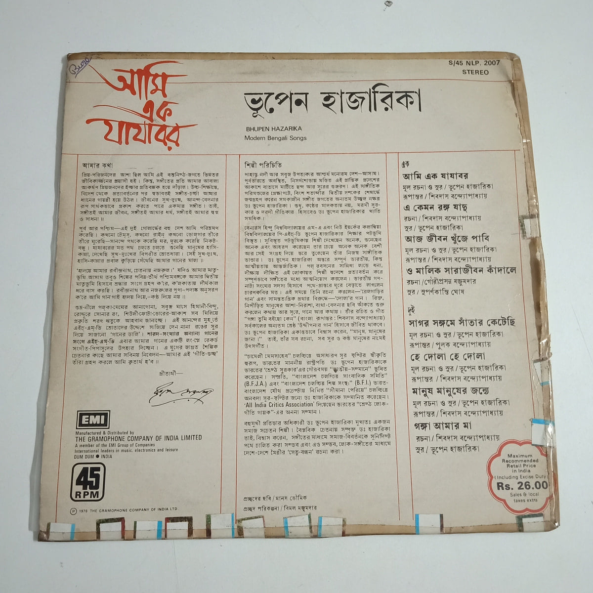 Bhupen spinning pure soul on wax—Buy আমি এক যাযাবর vinyl LP in Very Good condition Today!