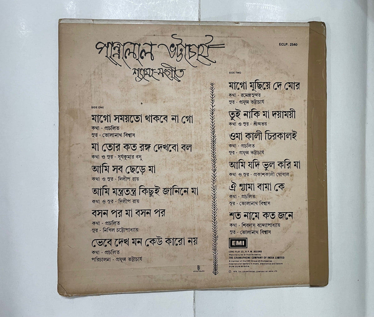 শ্যামা সঙ্গীত – Pannalal Bhattacharya Used Vinyl LP Record
