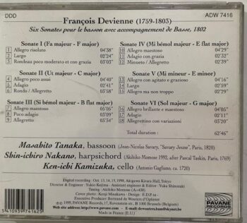 Buy Six Sonates Pour Le Basson Avec Accompagnement de Basse (1802) by François Devienne CD in Very Good condition Today!