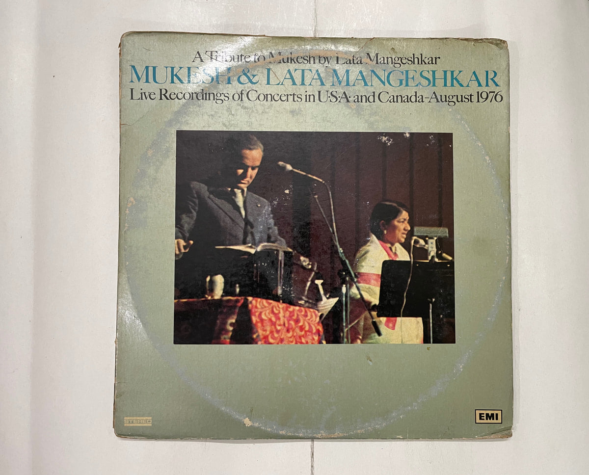 Two LPs, one moment in history: Lata Mangeshkar on stage in 1976, carrying Mukesh’s songs across U.S. and Canadian halls packed with homesick fans. You can almost picture the crowd holding its breath as she moves from one classic to the next, speaking to Mukesh as much as to the audience.