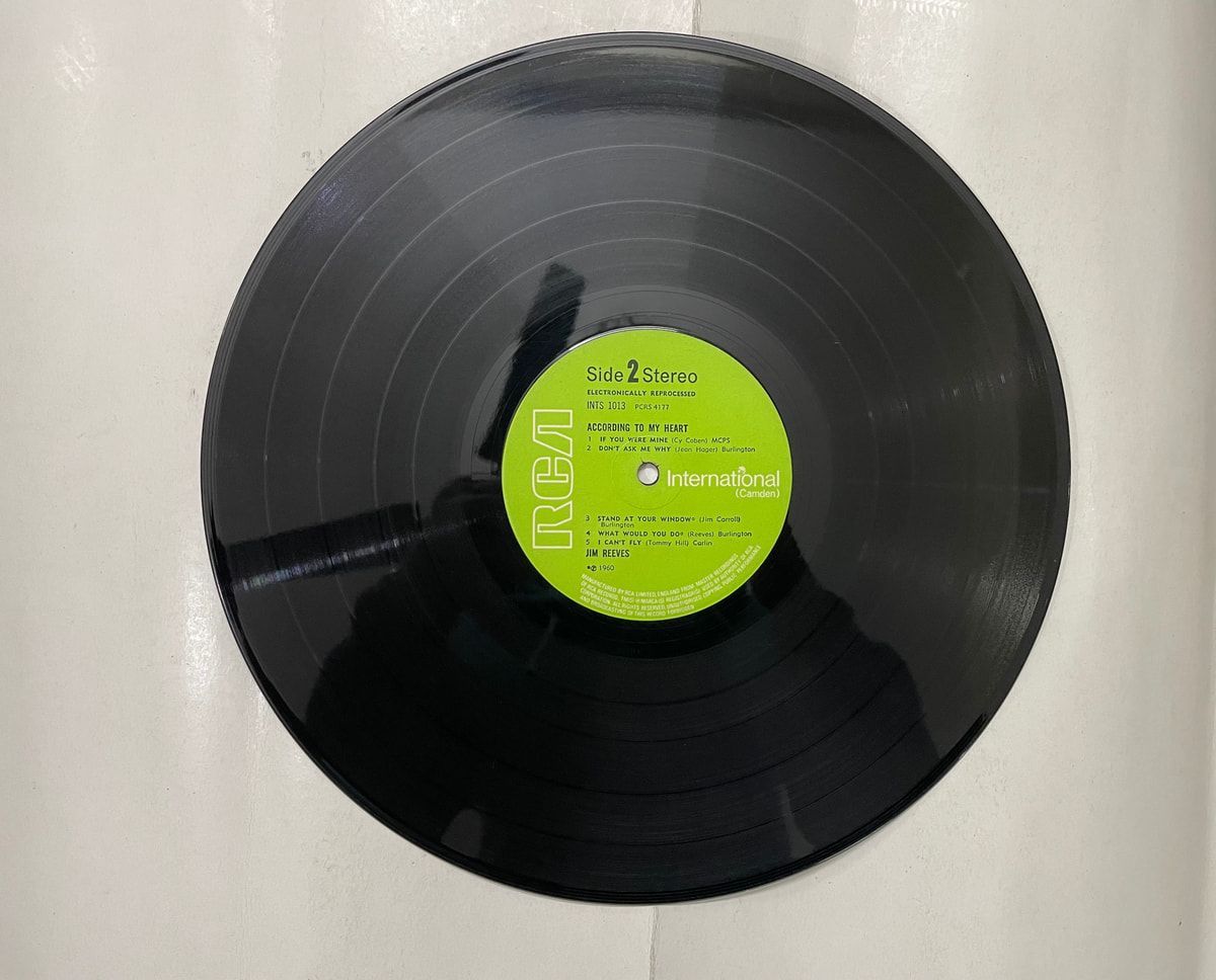 Golden-toned Jim Reeves LP, VG- shape—sing along or spin for soothing evenings. Buy According To My Heart vinyl LP in Very Good Minus condition Today!