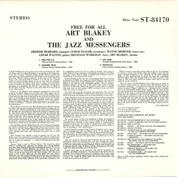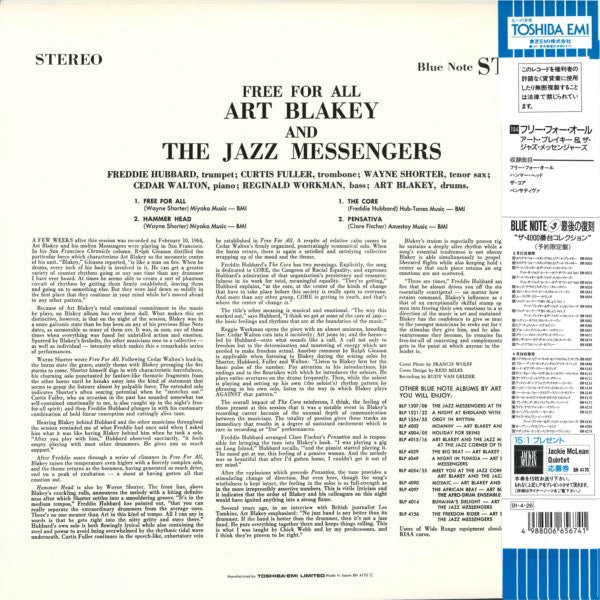 Discover the exquisite sound of Art Blakey’s ‘Free For All’ on this premium Japanese Import vinyl. Buy Free For All vinyl LP in Very Good Plus (VG+) condition Today!