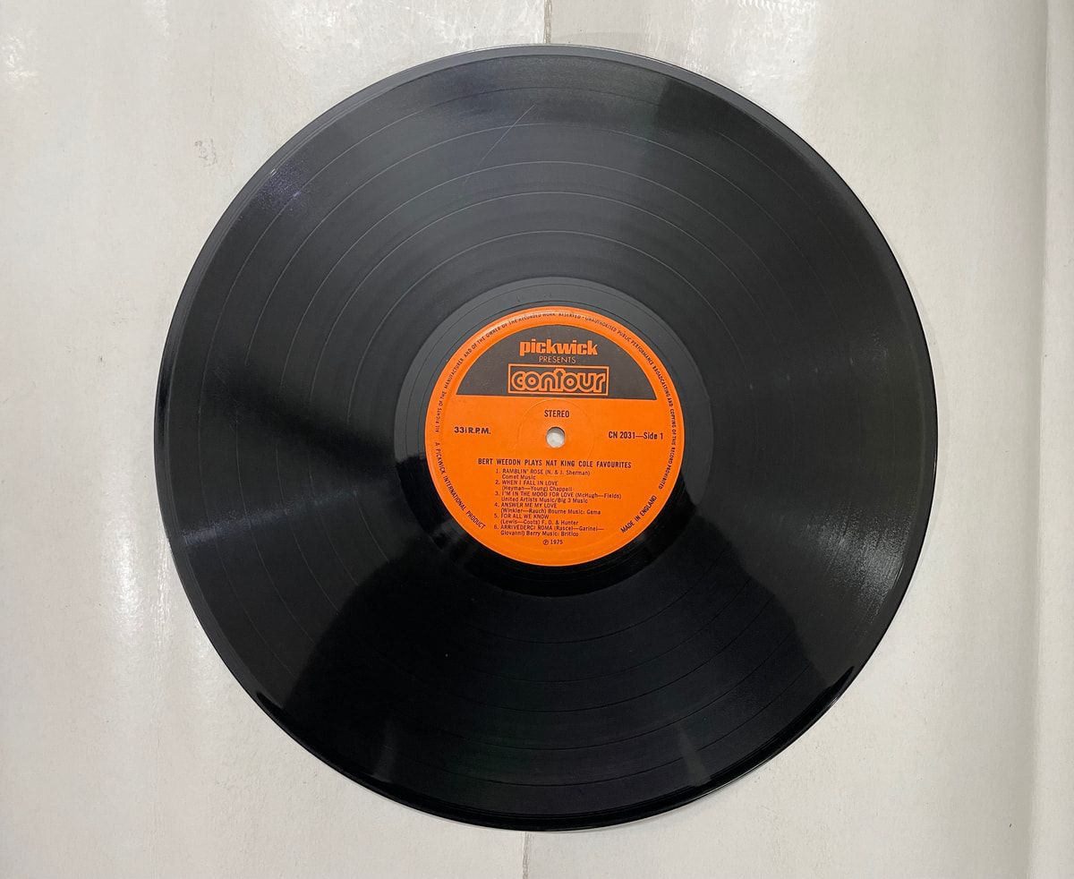 Bert Weedon’s guitar meets Nat King Cole’s classics—VG- LP, ready to spin! Buy Bert Weedon Plays Nat King Cole Favourites vinyl LP in Very Good Minus condition Today!