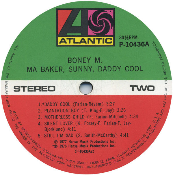 Get your hands on the Japanese Import of Boney M.’s Ma Baker, Sunny, Daddy Cool LP in Very Good Plus condition! Buy it today!