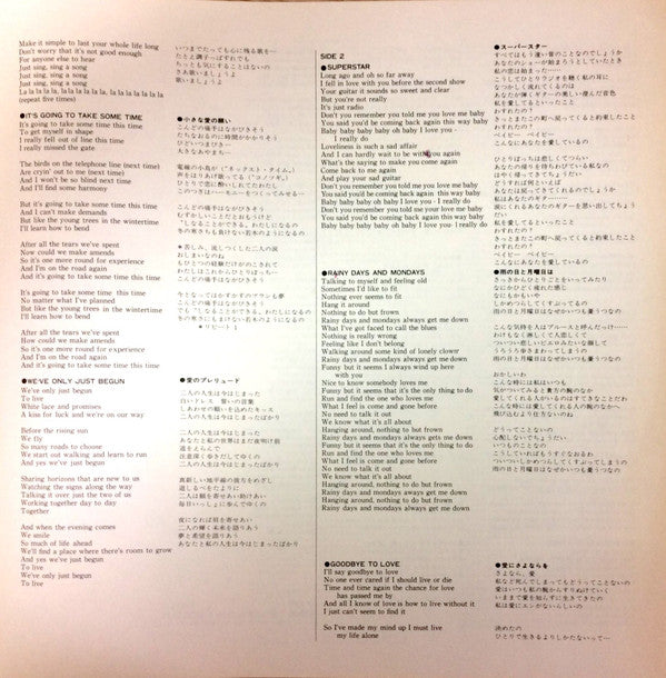 Discover the enchanting sounds of Golden Prize, Vol. 2 by the Carpenters, now available as a coveted Japanese Import. This vinyl LP, in Very Good (VG) condition, offers an authentic listening experience that showcases the meticulous craftsmanship of Japanese pressings. The pristine condition, care, packaging of Japanese records are the worlds absolute best, ensuring that you receive a product that not only sounds fantastic but also looks stunning. Don’t miss the chance to add this classic to your collection. Buy Golden Prize, Vol. 2 vinyl LP in Very Good (VG) condition today!