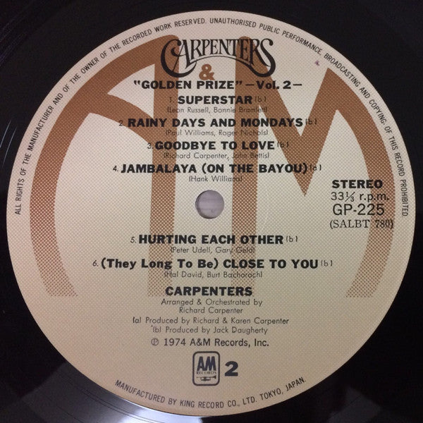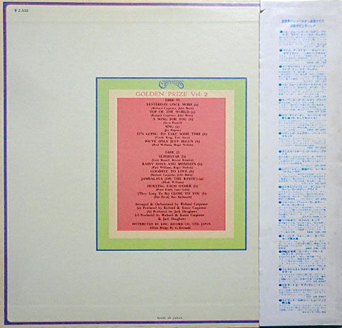 Get your hands on the Japanese Import of Golden Prize, Vol. 2 by Carpenters. Buy this premium vinyl LP in Very Good (VG) condition today!