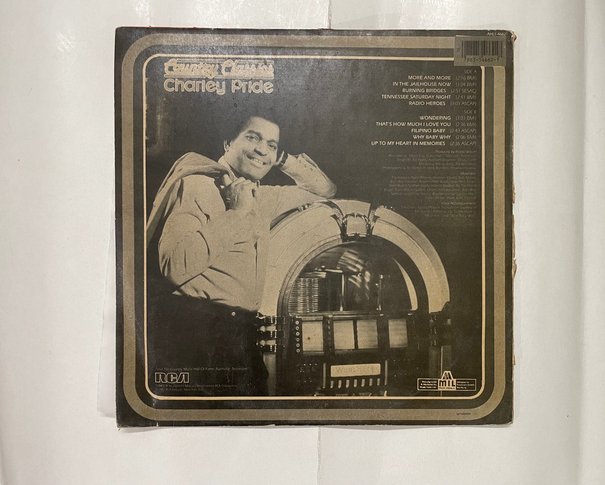 Charley Pride’s Country Classics LP—nostalgic, warm tones in Very Good Minus shape. Buy Country Classics vinyl LP in Very Good Minus condition Today!