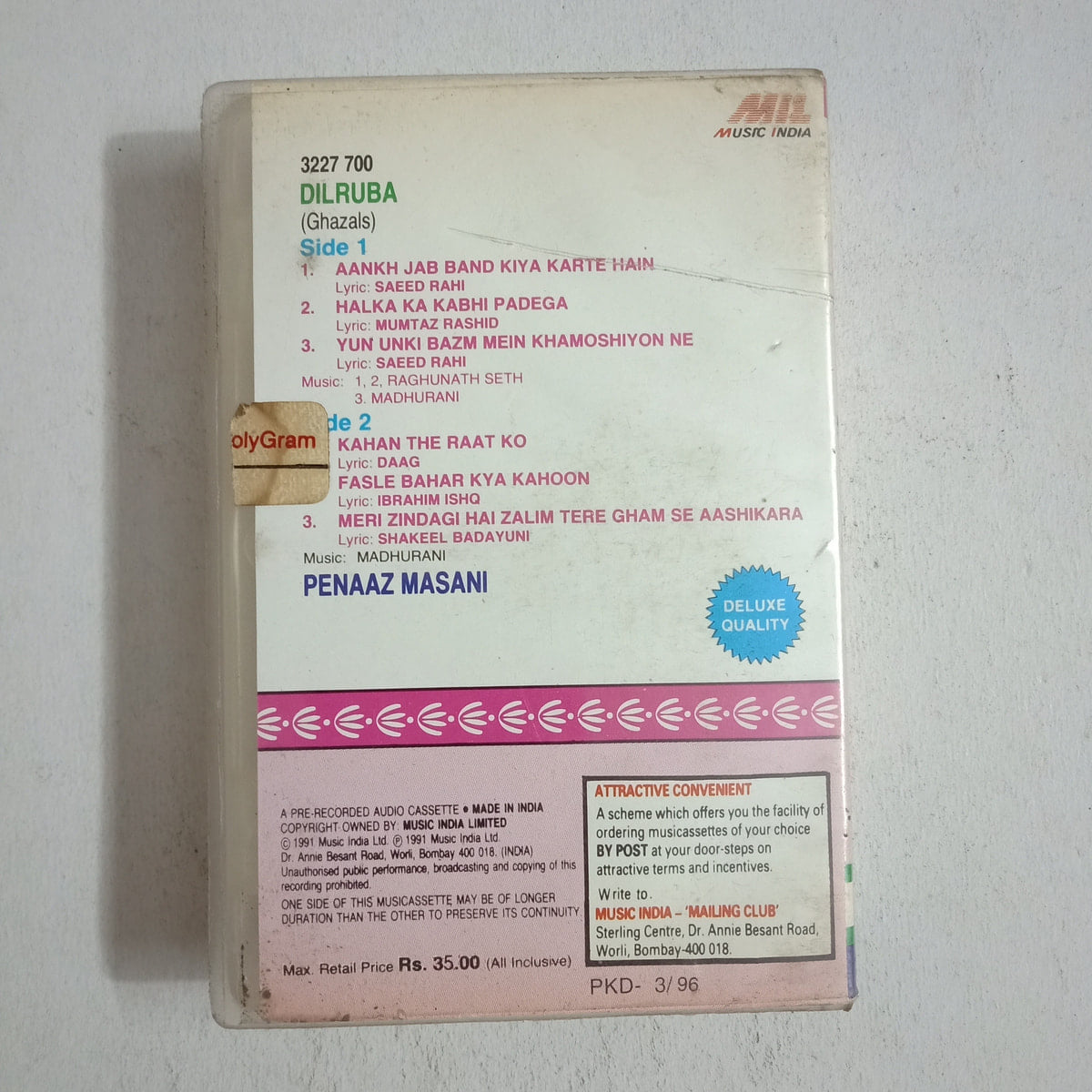 Dilruba (Ghazals) – Penaaz Masani Used Audio Cassette