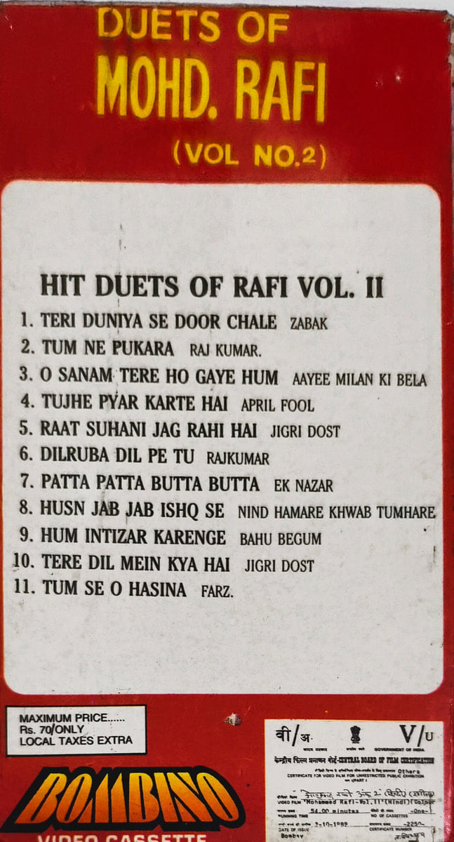 Mohd. Rafi’s legendary duets from 1995—on VHS, in Very Good Minus shape. Relive Hindi classics tonight.
