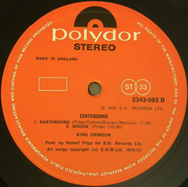 Earthbound – King Crimson – LP – Pre Owned Vinyl (Arrives in 21days)