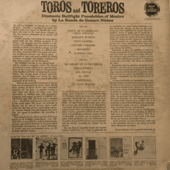 Buy Toros And Toreros: Dramatic Bullfight Pasodobles Of Mexico in Vinyl Record Today! Immerse yourself in the passion and drama of Mexico’s bullfighting tradition, performed by the phenomenal La Banda de Genero Nunez!