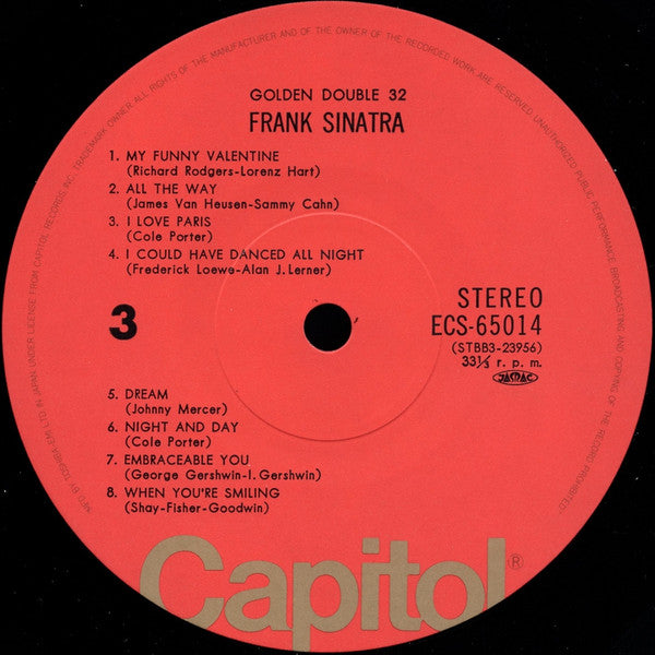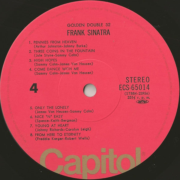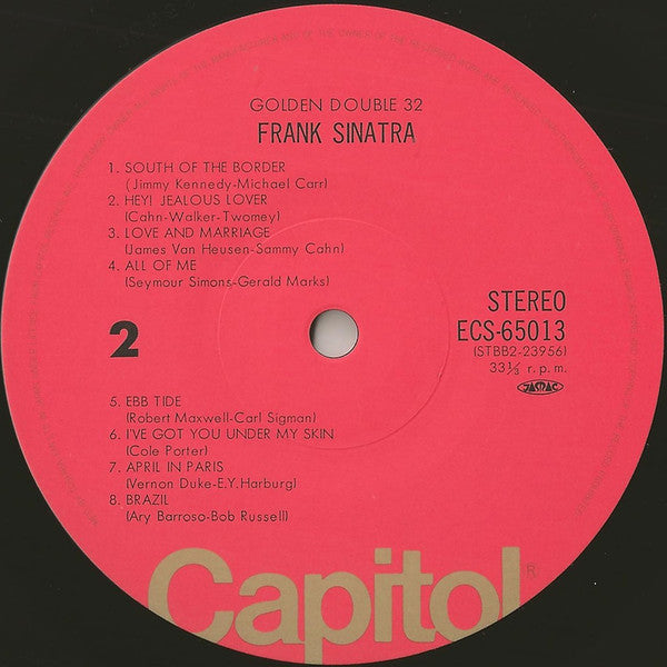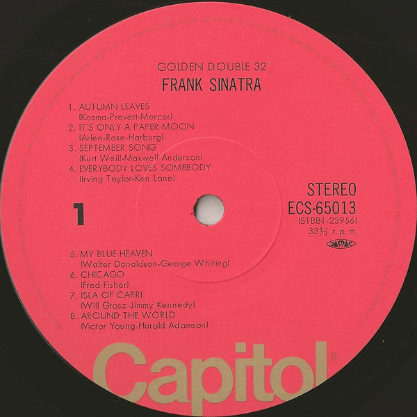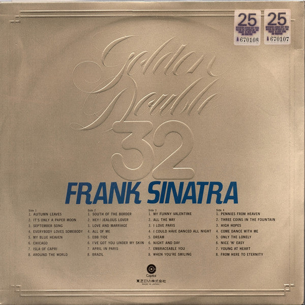 Discover the elegance of Frank Sinatra with the Japanese Import Golden Double 32 vinyl LP. Buy it in Very Good (VG) condition Today!