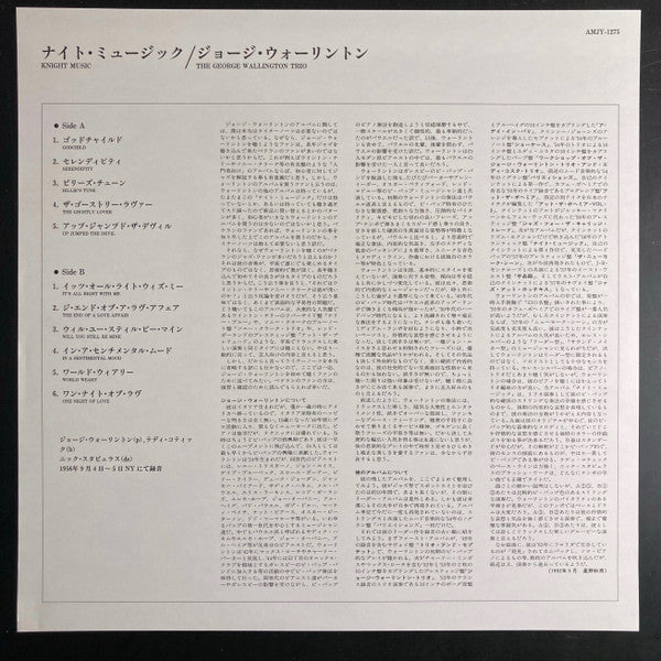 Discover the elegance of Japanese Import vinyl with Knight Music: George Wallington Plays 5 Originals And 6 Standards. Buy now in Very Good Plus (VG+) condition!