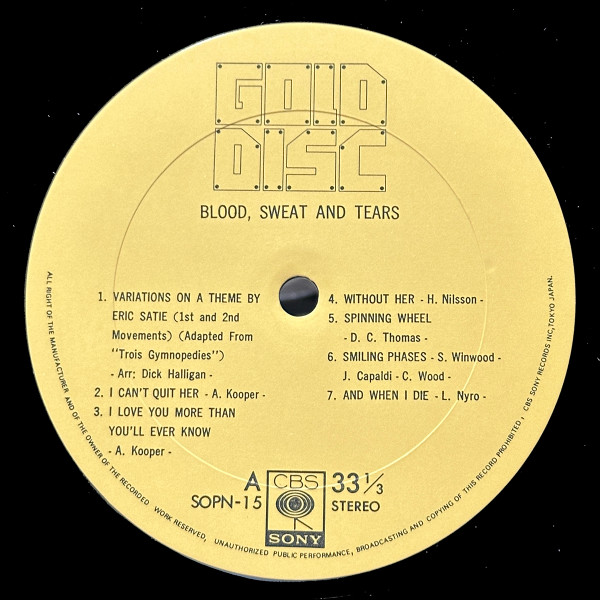Gold Disc – Blood, Sweat And Tears – LP – Pre Owned Vinyl (Arrives in 21days)