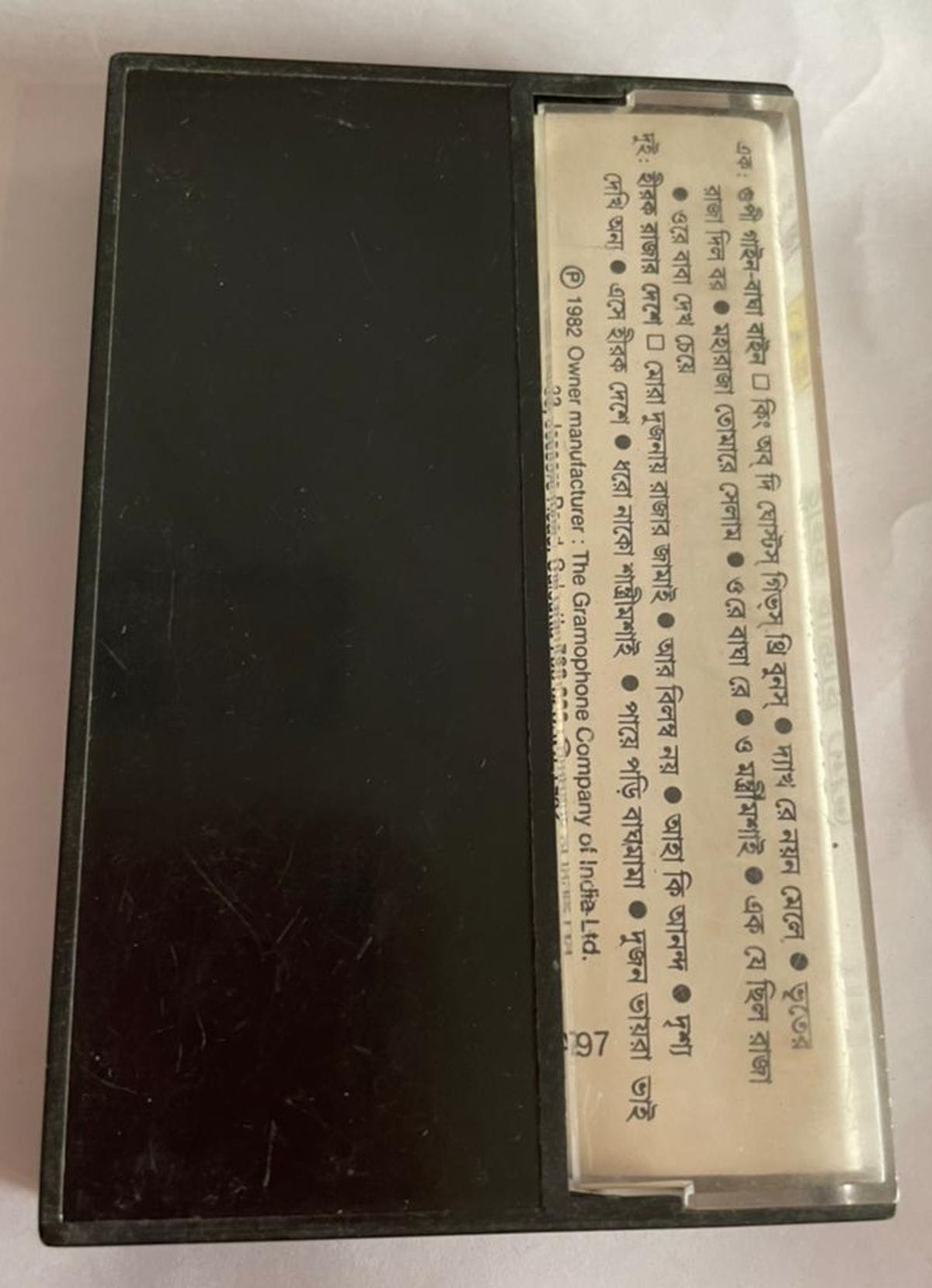 Transport yourself to the enchanting world of Bengali film songs with the ‘GUPI GAYEN BAGHA BAYEN & HIROK RAJAR DESHE’ cassette. Released in 1996 by HMV, this rare find in VG- condition promises a nostalgic musical journey. Immerse in the melodies of yesteryears in Bengali. A collector’s delight at your fingertips. Buy it now!