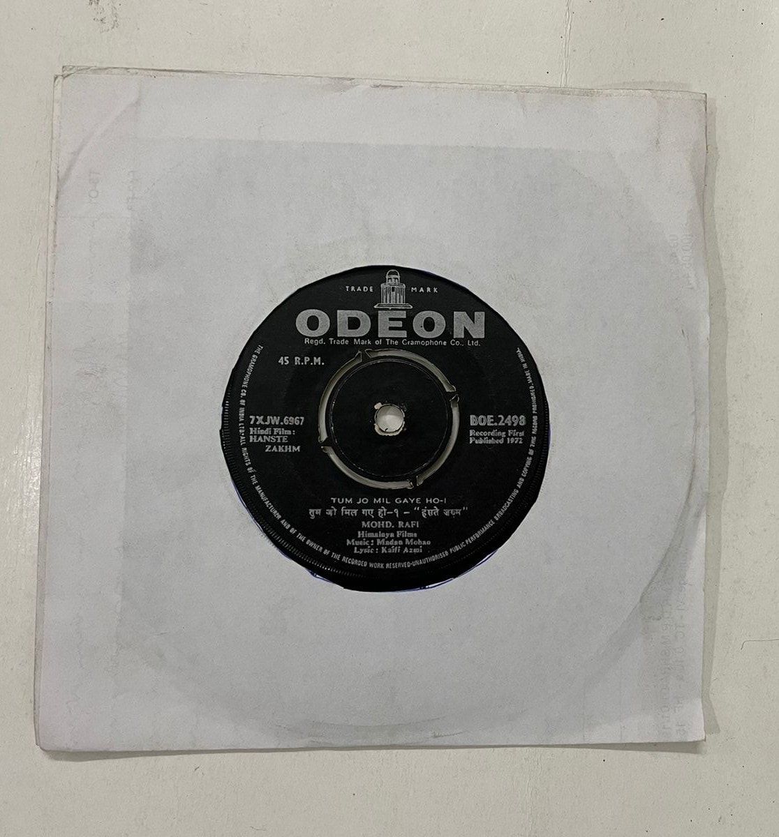 Mohd Rafi’s voice in ‘HANSTE ZAKHM’ turns any evening nostalgic. This Odeon 1972 vinyl EP, in Very Good Minus condition, lets you hear every gentle nuance, a few pops and crackles only adding to its charm. The sleeve carries just the right touch of history—no major damage, just honest wear, as if it’s passed through loving hands. Whether you grew up with these melodic masterpieces or you’re newly smitten by classic Bollywood, this record brings back an era when every note told a story. Collectors, this is your chance to own a true gem. Buy HANSTE ZAKHM vinyl EP in Very Good Minus condition Today!