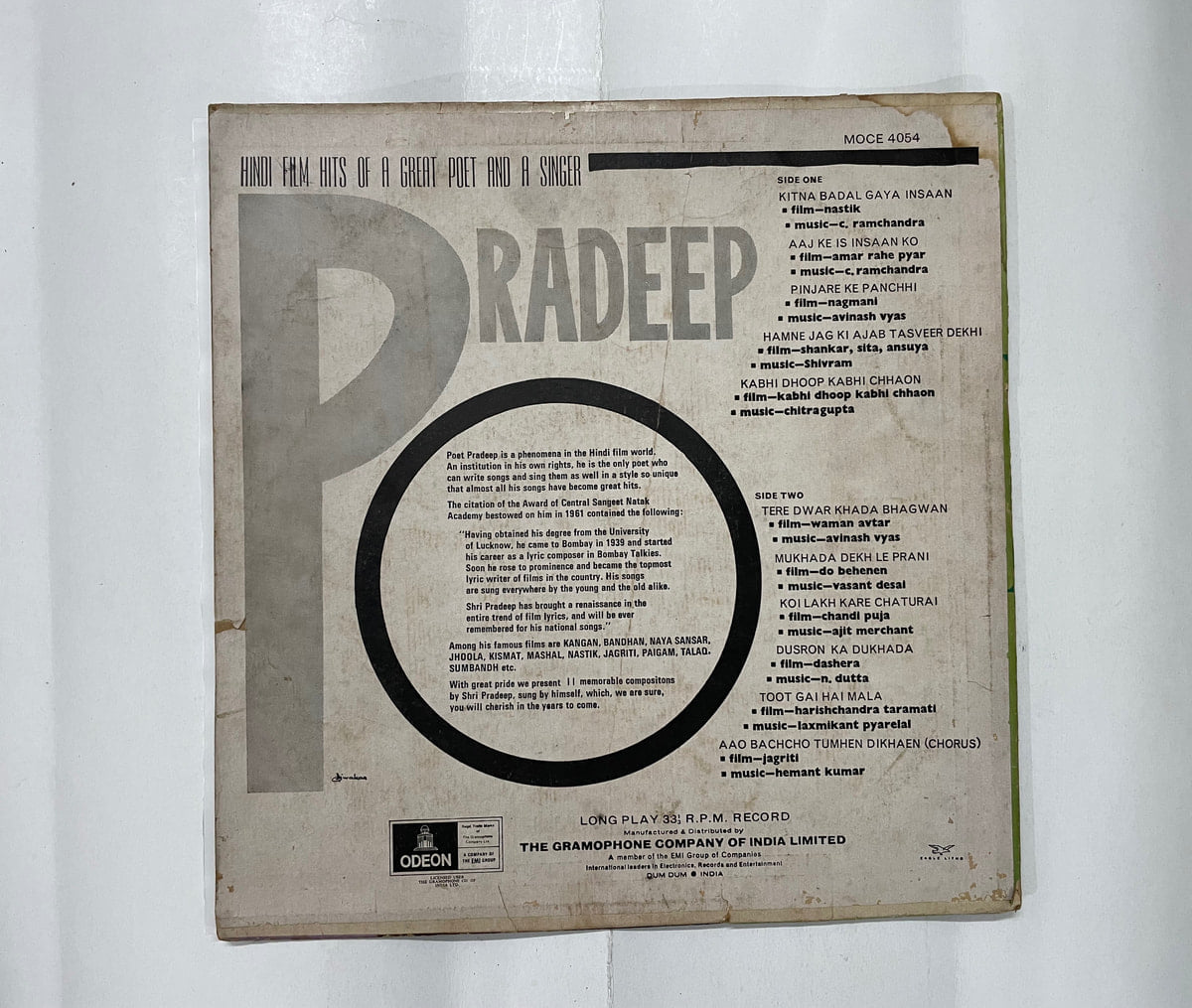 Hindi Film Hits Of A Great Poet And A Singer – Pradeep Used Vinyl LP Record