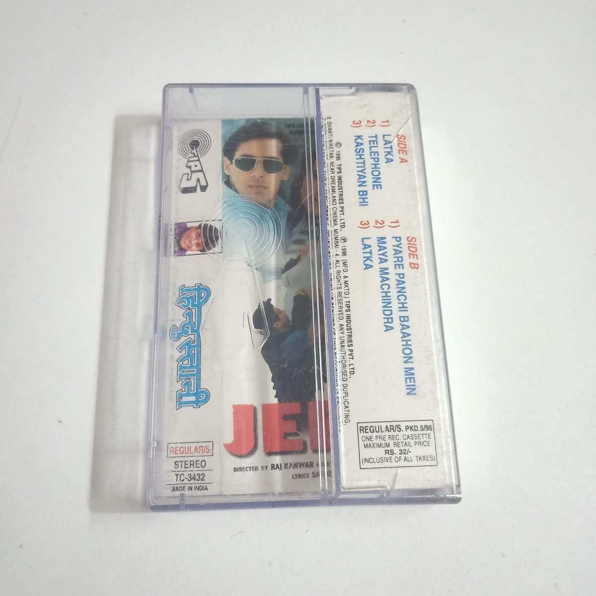 Tips’s 1996 release “Hindustani” lands here on its original Hindi audio cassette, ready to rewind you straight to mid‑90s film music—when big hooks, bold orchestration, and unapologetic drama ruled the charts. This used tape is in Very Good Minus shape on both the cassette and the cover: some light signs of handling, but nothing that gets in the way of cranking it up and letting the room fill with that slightly warm, lived‑in cassette sound.