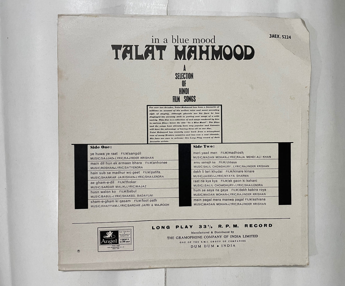 In A Blue Mood – Talat Mahmood Used Vinyl LP Record