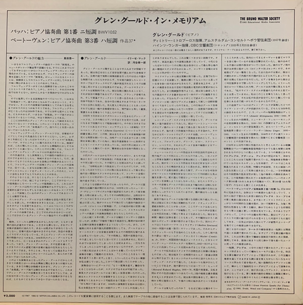 In Memoriam – J. S. Bach*, Beethoven* – Glenn Gould, Dimitri Mitropoulos, Concertgebouw Orchestra*, Heinz Unger*, CBC Symphony Orchestra – LP – Pre Owned Vinyl (Arrives in 14days)