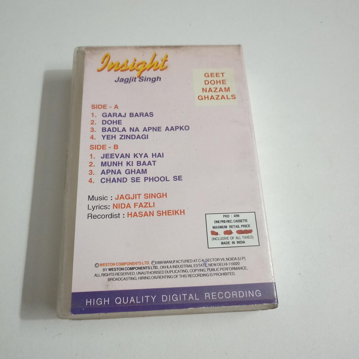 Jagjit Singh in rewindable form. Buy Insight cassette in Very Good condition Today!
