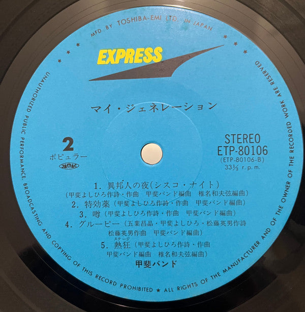 Elevate your collection with the Japanese Import of My Generation by Kai Band. Buy this premium vinyl LP in Very Good Plus (VG+) condition today!
