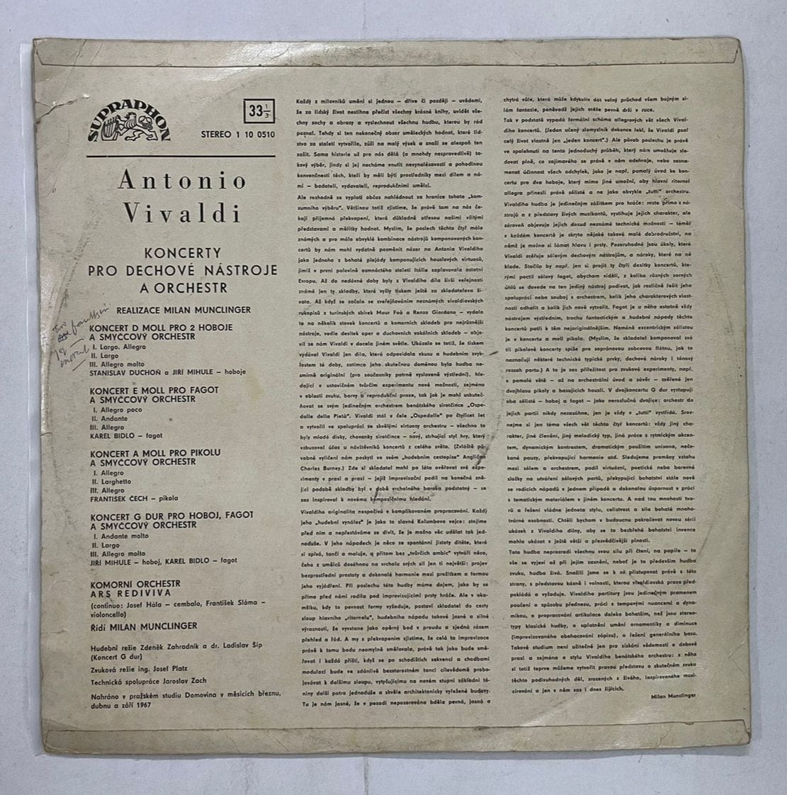 Vivaldi’s brass & winds come alive on vintage SUPRAPHON—VG audio, classic Czech charm. Buy it Today!
