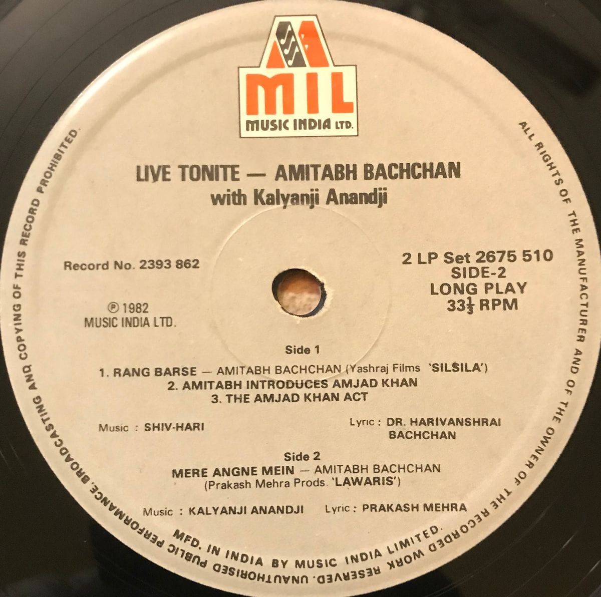 Buy Live Tonite by Amitabh Bachchan in VG- condition LP Today!