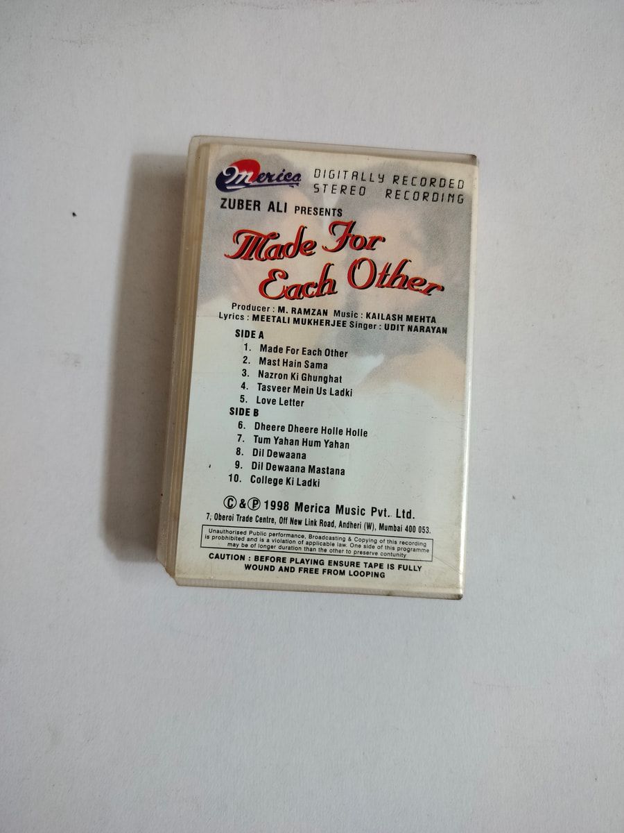 Relive ’90s Bollywood magic—Buy Made For Each Other cassette in Very Good condition Today!