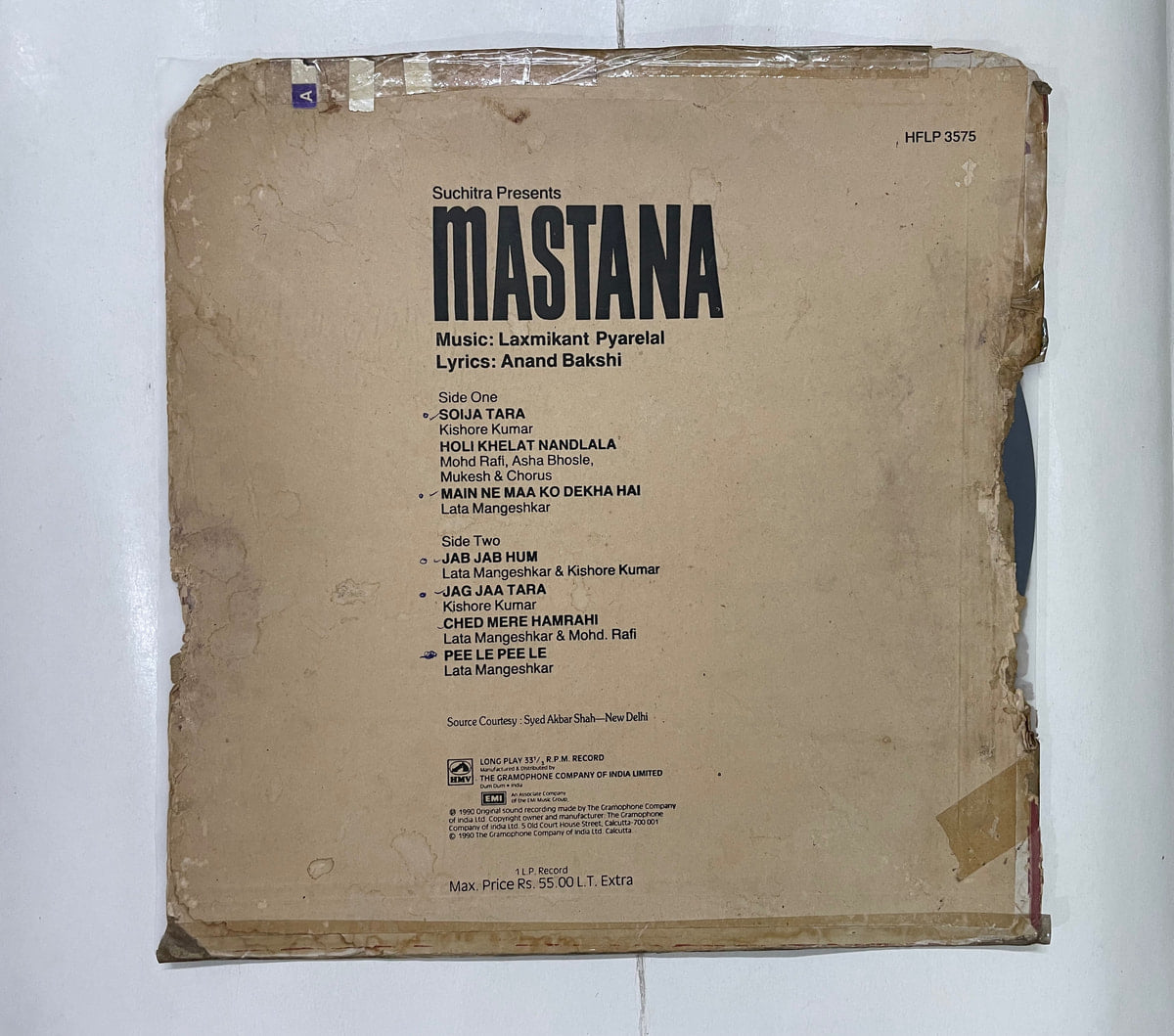 Here’s a slice of late‑’80s/early‑’90s Hindi film magic: “Mastana” scored by Laxmikant‑Pyarelal, pressed on an original His Master’s Voice LP. The jacket has really lived a life—graded Poor with plenty of wear—yet the record itself spins in Very Good Minus, still carrying that warm, slightly gritty charm you only get from a well‑kept used disc.