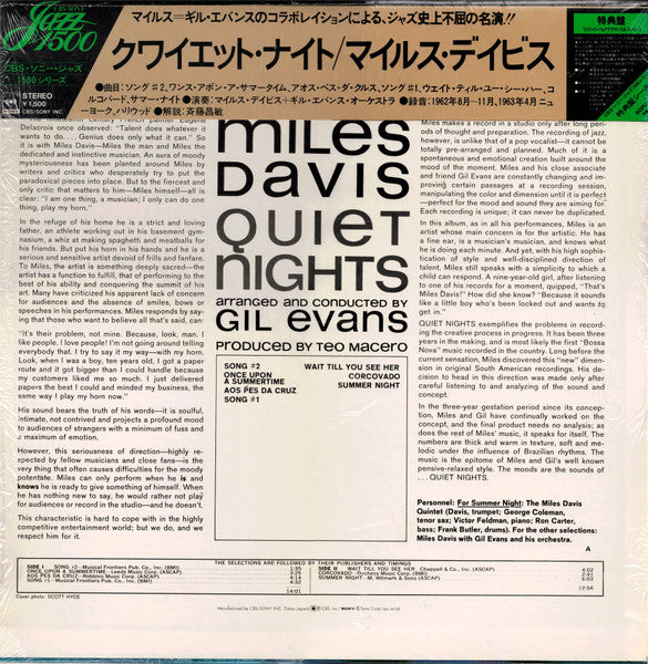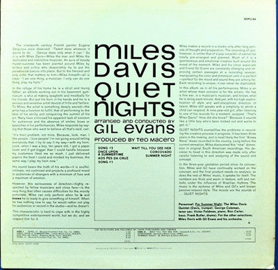 Experience the magic of Miles Davis with this Japanese Import of Quiet Nights LP. Buy Quiet Nights vinyl LP in Very Good Plus (VG+) condition Today!