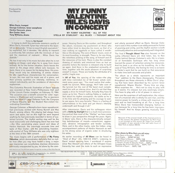 My Funny Valentine – Miles Davis In Concert – Miles Davis – LP – Pre Owned Vinyl (Arrives in 21days)