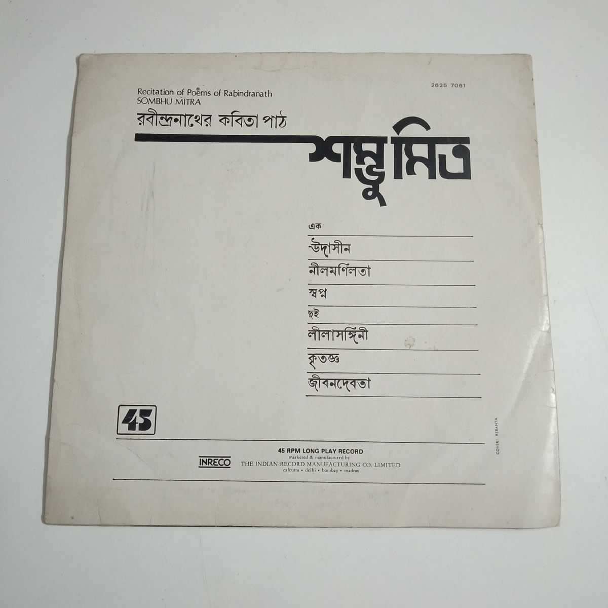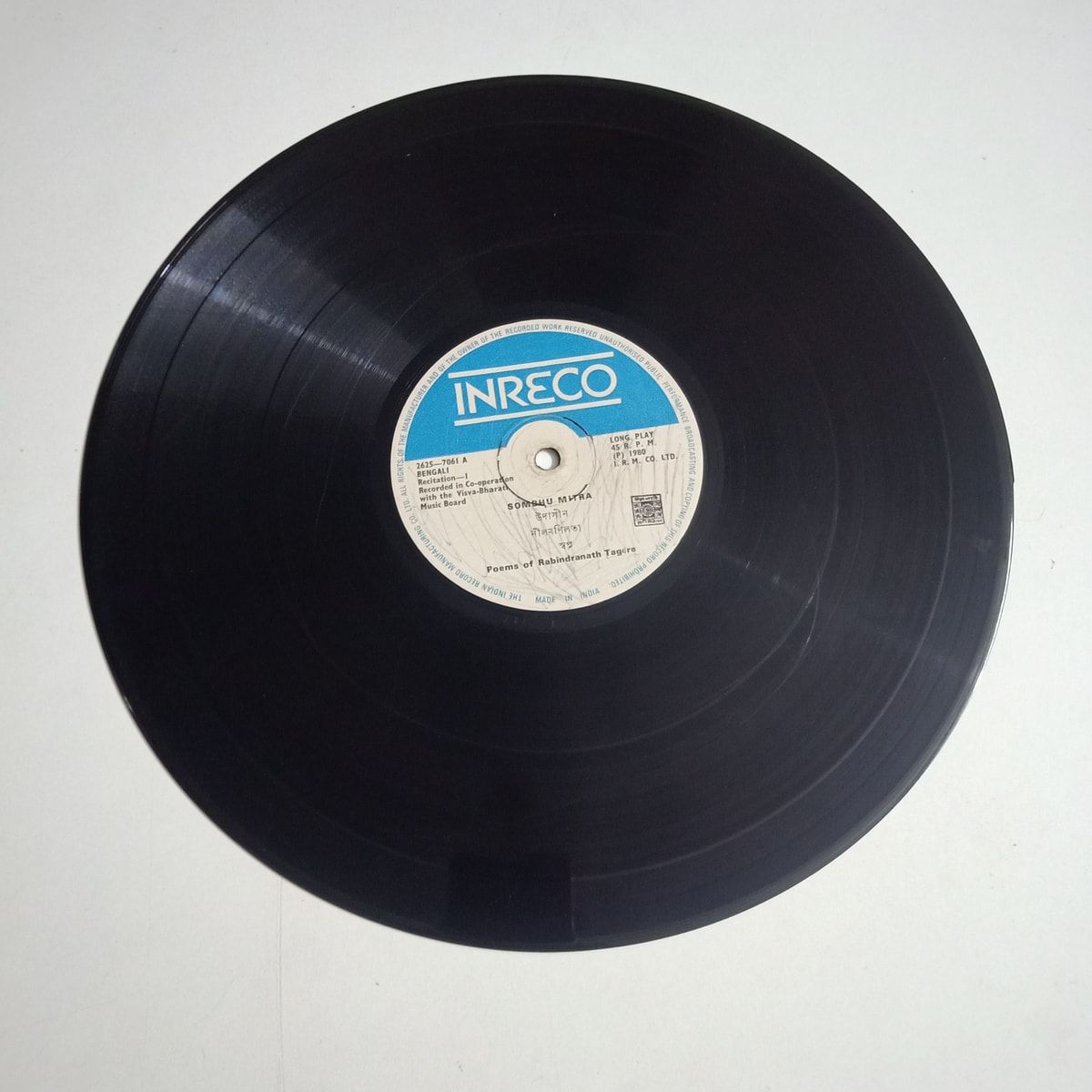 This 1980 Inreco LP pairs Sombhu Mitra’s unmistakable voice with the haunting beauty of Rabindranath Tagore’s poetry. The recordCondition is Poor: surface noise, visible marks, and plenty of life already lived in these grooves. Yet that same wear gives the recitations a hushed, old-radio charm—as if you’ve stumbled on a treasured family record in a Kolkata attic. The coverCondition is Very Good Minus, still solid with light age marks that suit its vintage character. Collectors of Bengali spoken word and Rabindra Sangeet circles know how rarely these recitation albums turn up, especially on original pressings. This isn’t for audiophile perfectionists; it’s for someone who values history, voice, and presence over pristine sound. If you’ve been hunting for a copy to actually play, annotate, and love rather than lock away, this one has your name written all over it. Buy Recitation of Poems Of Rabindranath vinyl LP in Poor condition Today!