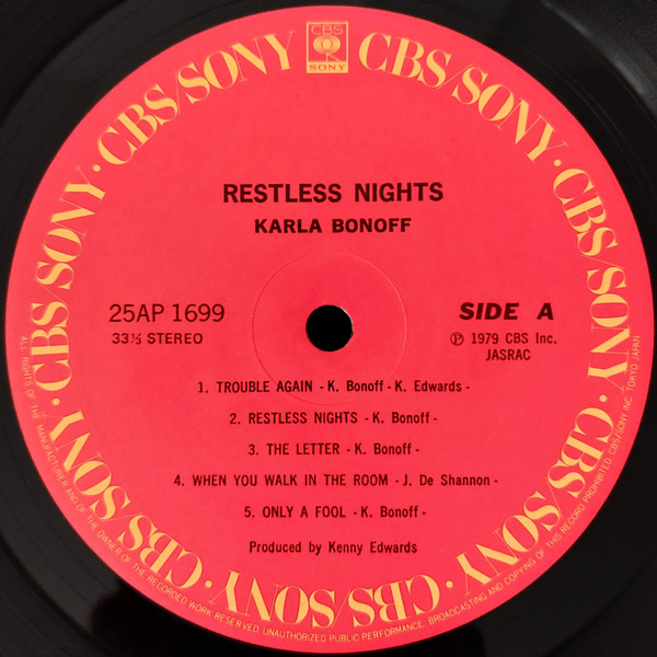 Restless Nights – Karla Bonoff – LP – Pre Owned Vinyl (Arrives in 21days)