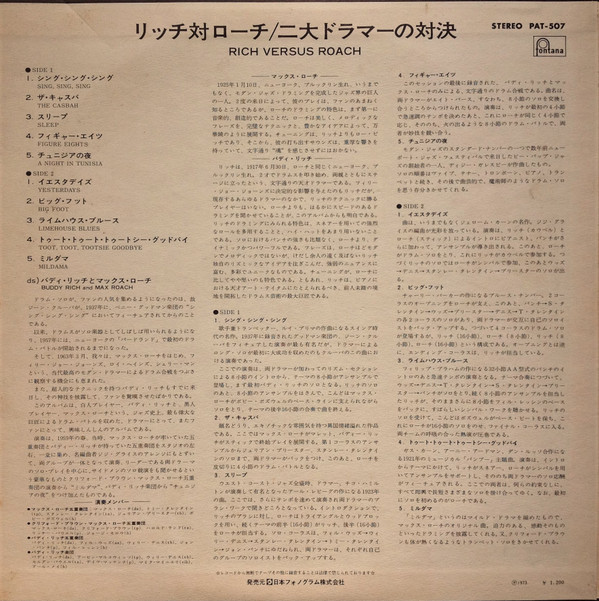 Rich Versus Roach = リッチ対ローチ / 二大ドラマーの対決 – Buddy Rich And Max Roach = バディ・リッチ* と マックス・ローチ* – LP – Pre Owned Vinyl (Arrives in 14days)