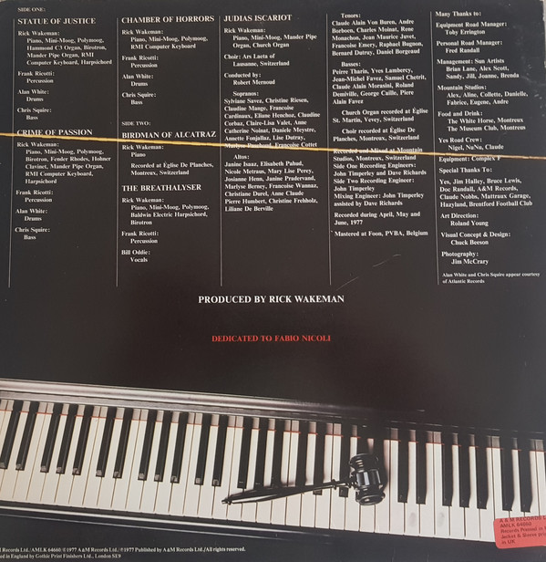 Rick Wakeman’s ‘Criminal Record’ stands as a high point in progressive rock’s golden era, weaving together virtuosity, wit, and a dash of irreverence. Recorded in 1977, this concept album finds Wakeman—known for his flamboyant keyboard prowess with Yes—crafting an instrumental journey through themes of crime and punishment. What sets ‘Criminal Record’ apart is not just its technical brilliance, but the playful theatricality Wakeman injects into every composition. The album features guest appearances from fellow Yes members Chris Squire and Alan White, lending rhythmic force and textural depth to Wakeman’s cinematic soundscapes. From the thunderous organ flourishes of ‘Statue of Justice’ to the intricate layering on ‘Chamber of Horrors,’ each track feels like a sly nod to classic courtroom drama, reimagined through the lens of progressive rock. Listeners will appreciate the seamless blend of classical influences, rock instrumentation, and Wakeman’s signature sense of humor. For collectors and prog fans alike, ‘Criminal Record’ is not just an album—it’s a testament to the era’s ambition and Wakeman’s enduring creativity. This is a must-have for anyone seeking both technical mastery and a playful twist on the concept album format.