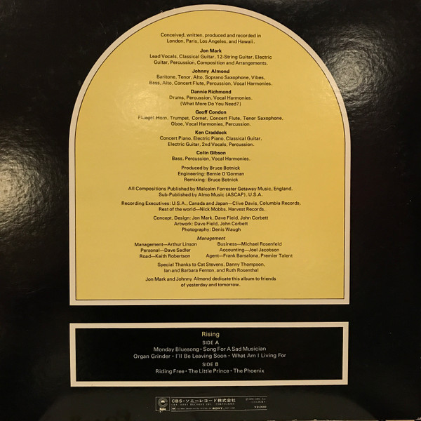 What sets ‘Rising’ apart is its cinematic approach. Tracks like “The Sausalito Bay Suite” unfold with a sense of place and longing, while Mark’s guitar and Almond’s expressive reeds delicately interplay throughout. The album doesn’t shout; it draws you in with its understated textures and melodic grace. For fans of jazz who appreciate music that feels lived-in and personal, ‘Rising’ is a testament to the transformative power of subtlety. This is a record for quiet evenings, deep reflection, and those moments when only the most evocative sounds will do. Owning this album is essential for any collector seeking a landmark in early 70s jazz fusion.