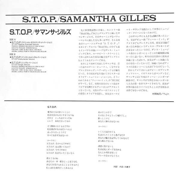 S.T.O.P. by Samantha Gilles is a radiant testament to the exuberance of 80s European pop. Released at the height of synth-driven dance music, this album captures the effervescent spirit of the era—where pulsing drum machines and shimmering keyboards reigned supreme. Gilles’ vocals glide effortlessly over sleek production, inviting listeners to relive the neon-lit dance floors and unrestrained optimism of a period that shaped modern pop sensibilities. What sets S.T.O.P. apart is its crisp melodic hooks, which remain remarkably fresh decades later, and Gilles’ charismatic delivery, which bridges the gap between continental club culture and mainstream radio appeal. For collectors, this record is more than nostalgia; it’s a snapshot of European pop’s evolution as it flirted with electronic innovation while keeping the heart of catchy songwriting intact. Owning S.T.O.P. is not just about spinning another 80s record—it’s about appreciating an era where the boundaries between disco, pop, and early electronic music blurred, giving rise to timeless dancefloor favorites. Whether you’re a seasoned vinyl enthusiast or new to the genre, Gilles’ S.T.O.P. is a high-energy addition that rewards every listen with infectious grooves and unfiltered dancefloor joy.