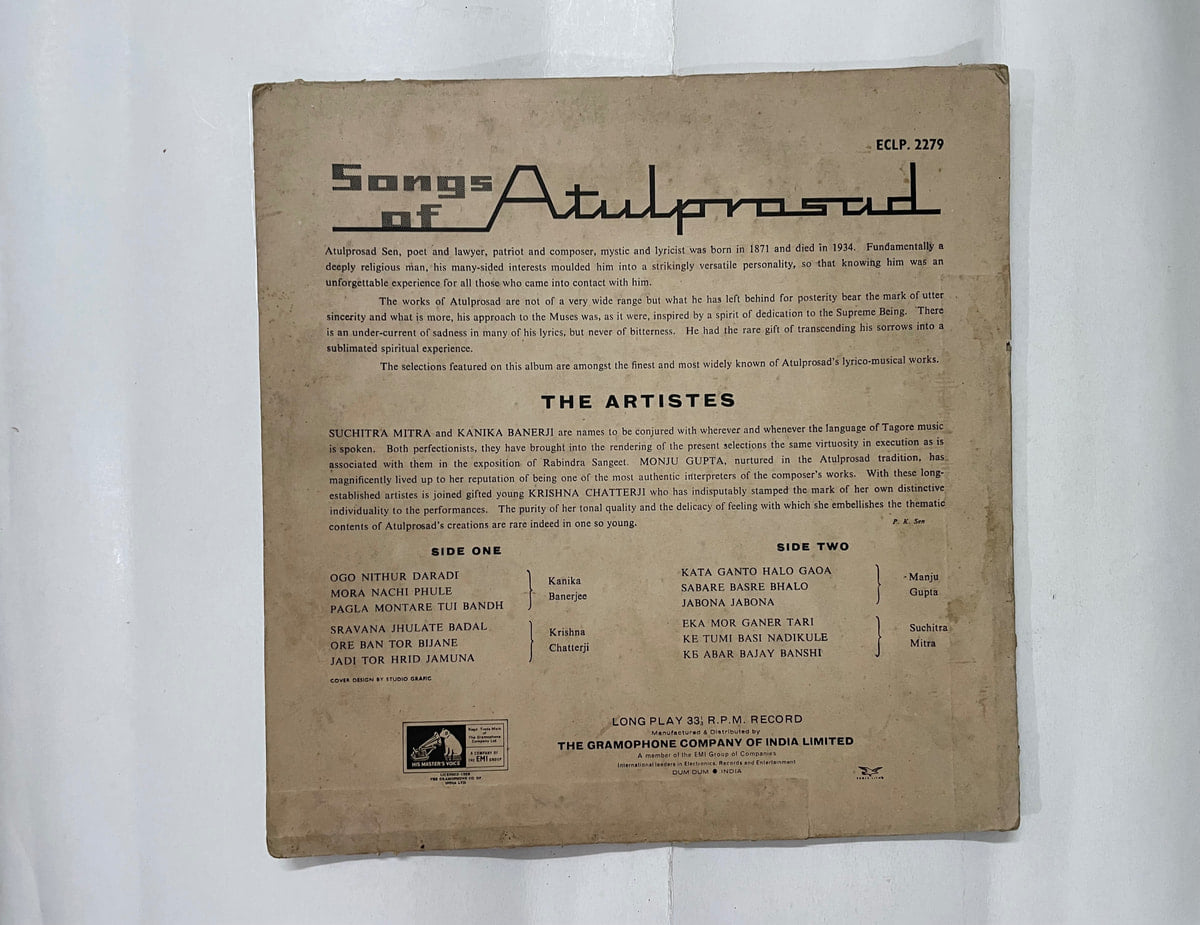 Songs Of Atul Prosad LP—Suchitra Mitra’s artistry, warm sound, and original 1962 press. Buy Today!