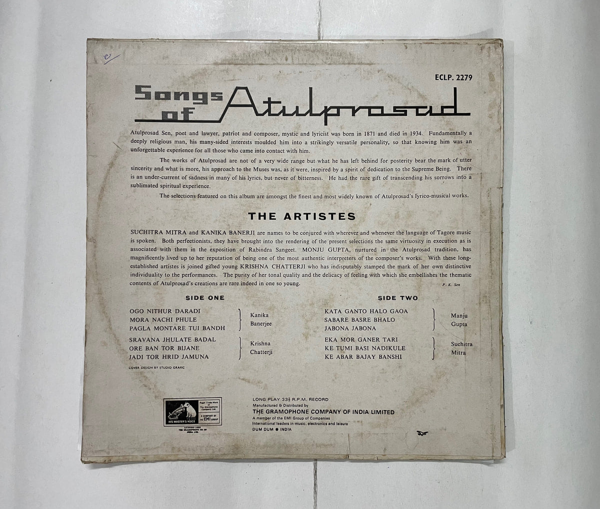 Suchitra Mitra on HMV shellac-era warmth—Buy Songs Of Atul Prosad vinyl LP in Very Good Minus condition Today!