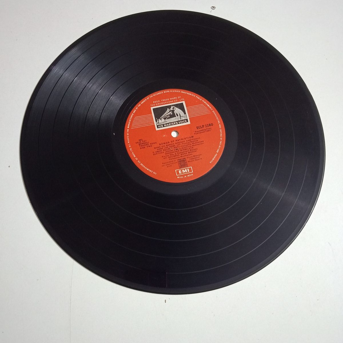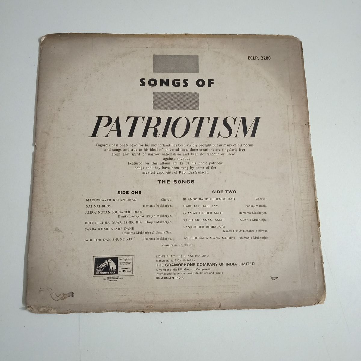 Pressed in 1962 on His Master’s Voice, this original Bengali Songs Of Patriotism LP gathers voices that carried real weight in a young nation finding its feet. The record itself sits in solid Very Good Minus shape: some light surface noise here and there, but the music pushes straight through with that warm, slightly raw HMV studio sound that modern reissues never quite catch. The cover, though, has had a life — graded Poor, worn edges, heavy ringwear, the kind of sleeve you can imagine passing through many careful hands every 26th January. That contrast makes it oddly charming: a battle-scarred jacket sheltering grooves that still stand tall. If you’re building a serious Bengali or political song shelf, or you just want the sound of history spun the way people actually heard it in the early ’60s, this belongs right next to your turntable. Buy Songs Of Patriotism vinyl LP in Very Good Minus condition Today!