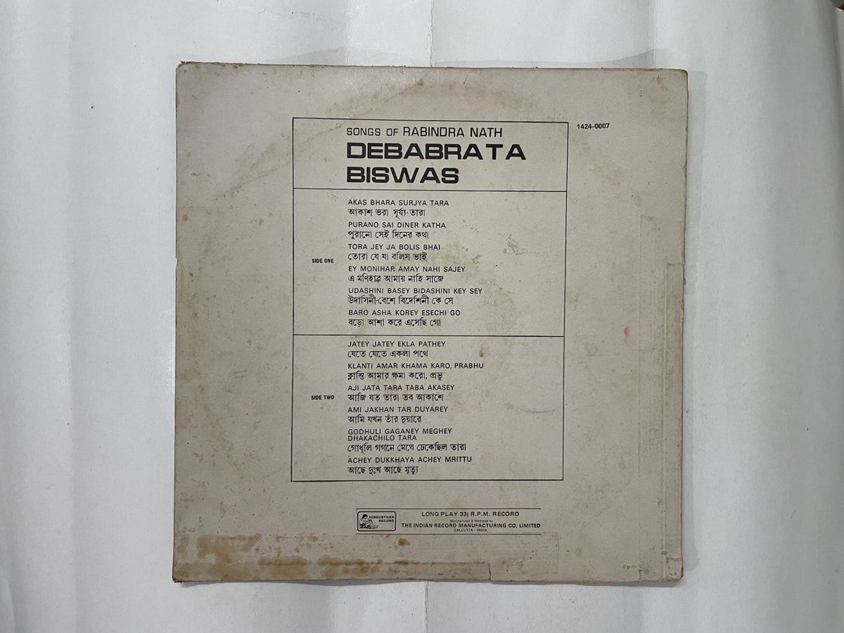 Classic Rabindra Sangeet, Debabrata Biswas voice magic on a VG- LP. Buy Songs Of Rabindra Nath vinyl LP in Very Good Minus condition Today!