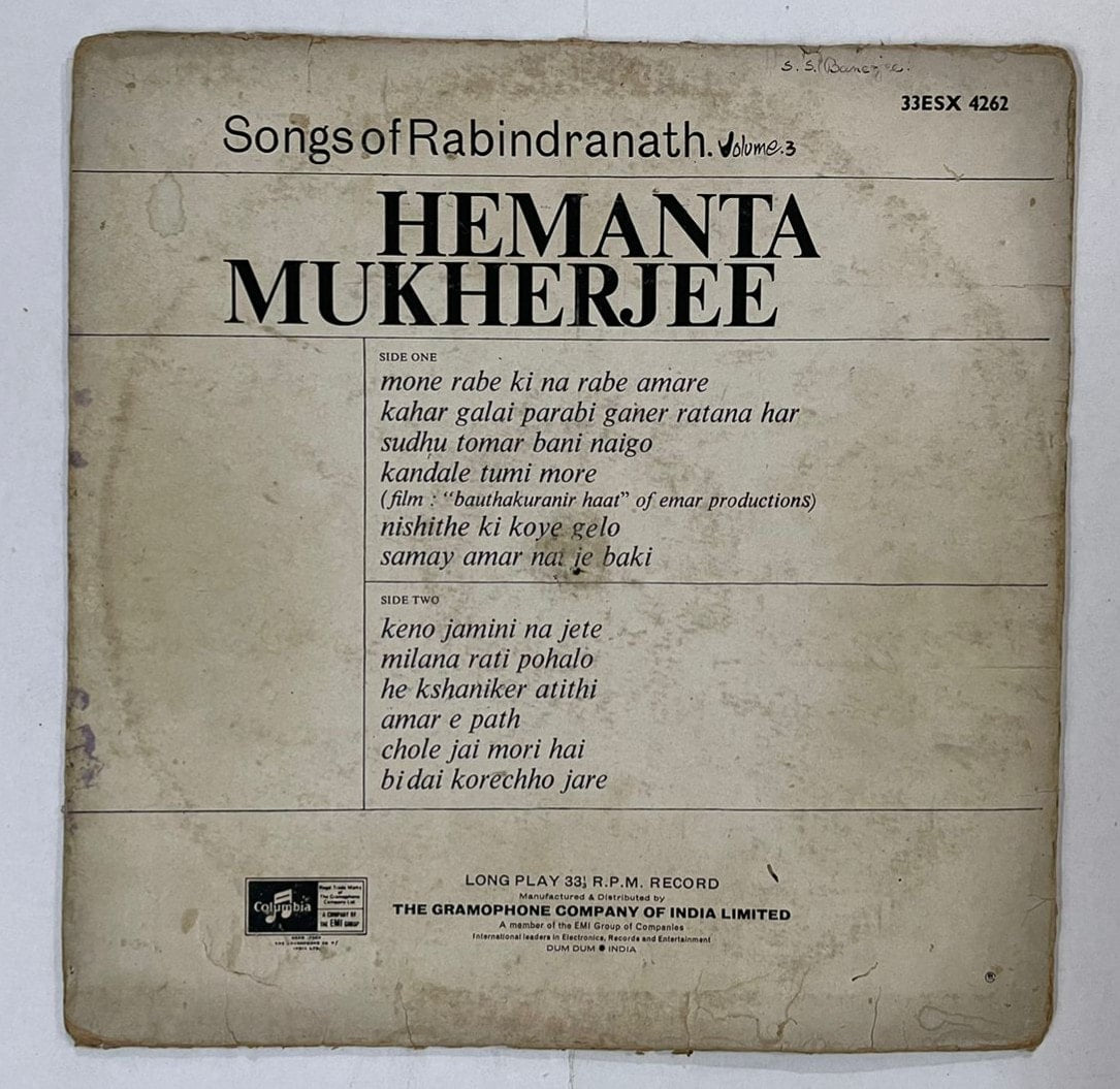 Songs of Rabindranath Vol. 3 – Hemanta Mukherjee Used Vinyl LP Record