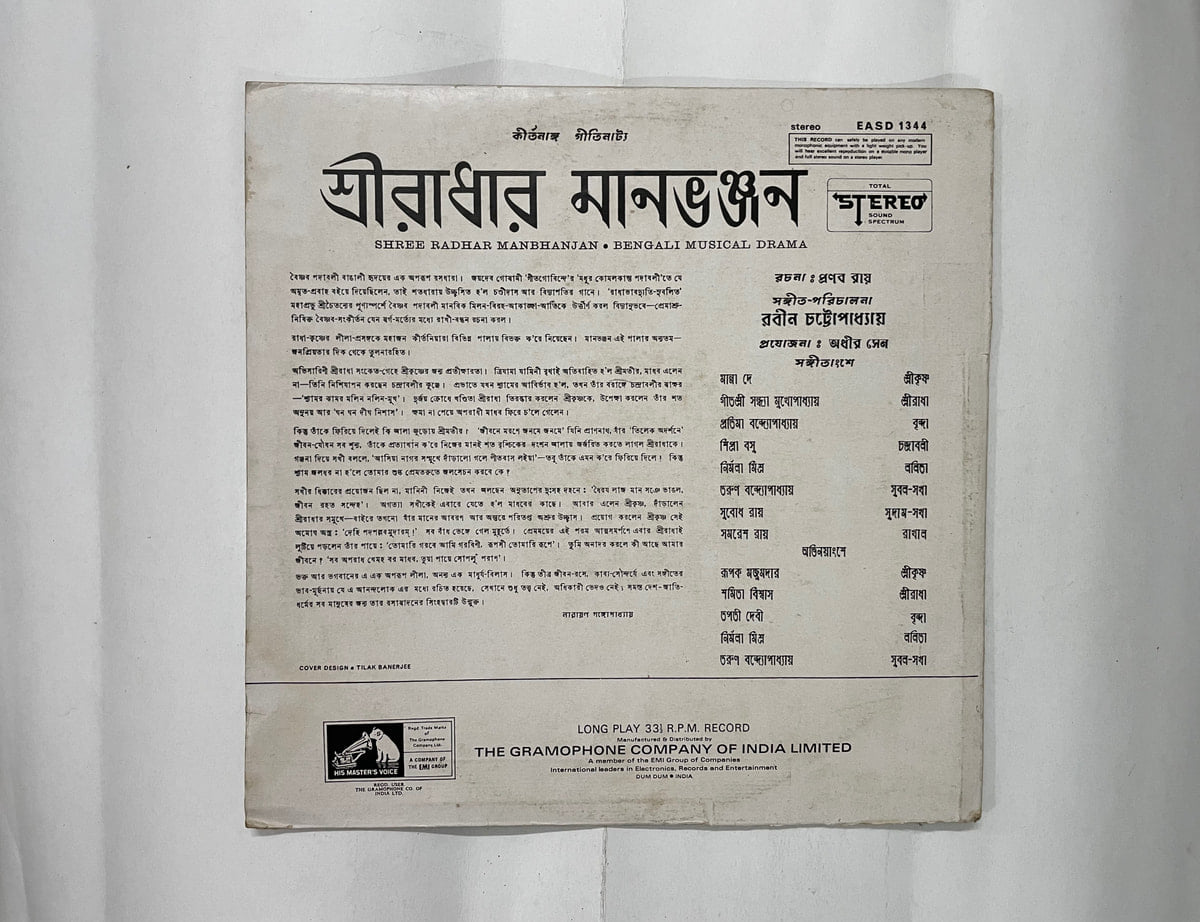 EMI’s 1998 Sree radhar manbhonjon LP—clean grooves & a crisp cover. Buy Sree radhar manbhonjon vinyl LP in Very Good condition Today!