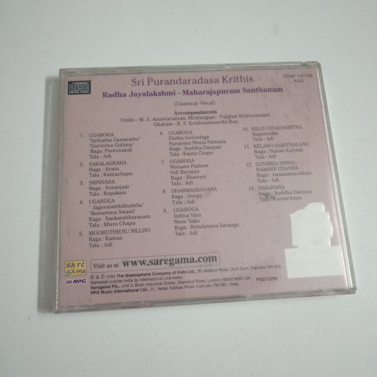 Rare RPG release—soulful Purandaradasa krithis, CD plays perfectly. Buy Sri Purandaradasa Krithis cd in Very Good condition Today!