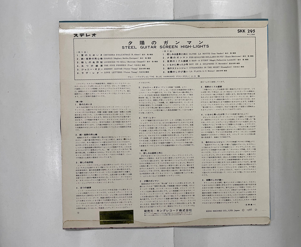 Takashi Kobayashi and His Blue Hawaiians serve up lush island vibes and vintage surf sway on ‘Steel Guitar Screen High-Lights’. Pressed in 1966 by King Records, this LP is a true gem for fans of dreamy steel guitar work. With twangy melodies and sun-soaked themes, it’s made for those days when you wish you were beachside or just want a taste of old-school exotica. The record sounds solid in Very Good Minus condition—expect some nostalgic crackle that only adds to its character. The cover’s been lovingly remade, giving it fresh shelf appeal. Perfect for collectors who crave authenticity and a little escape, this classic doesn’t surface often. Buy Steel Guitar Screen High-Lights vinyl LP in Very Good Minus condition Today!