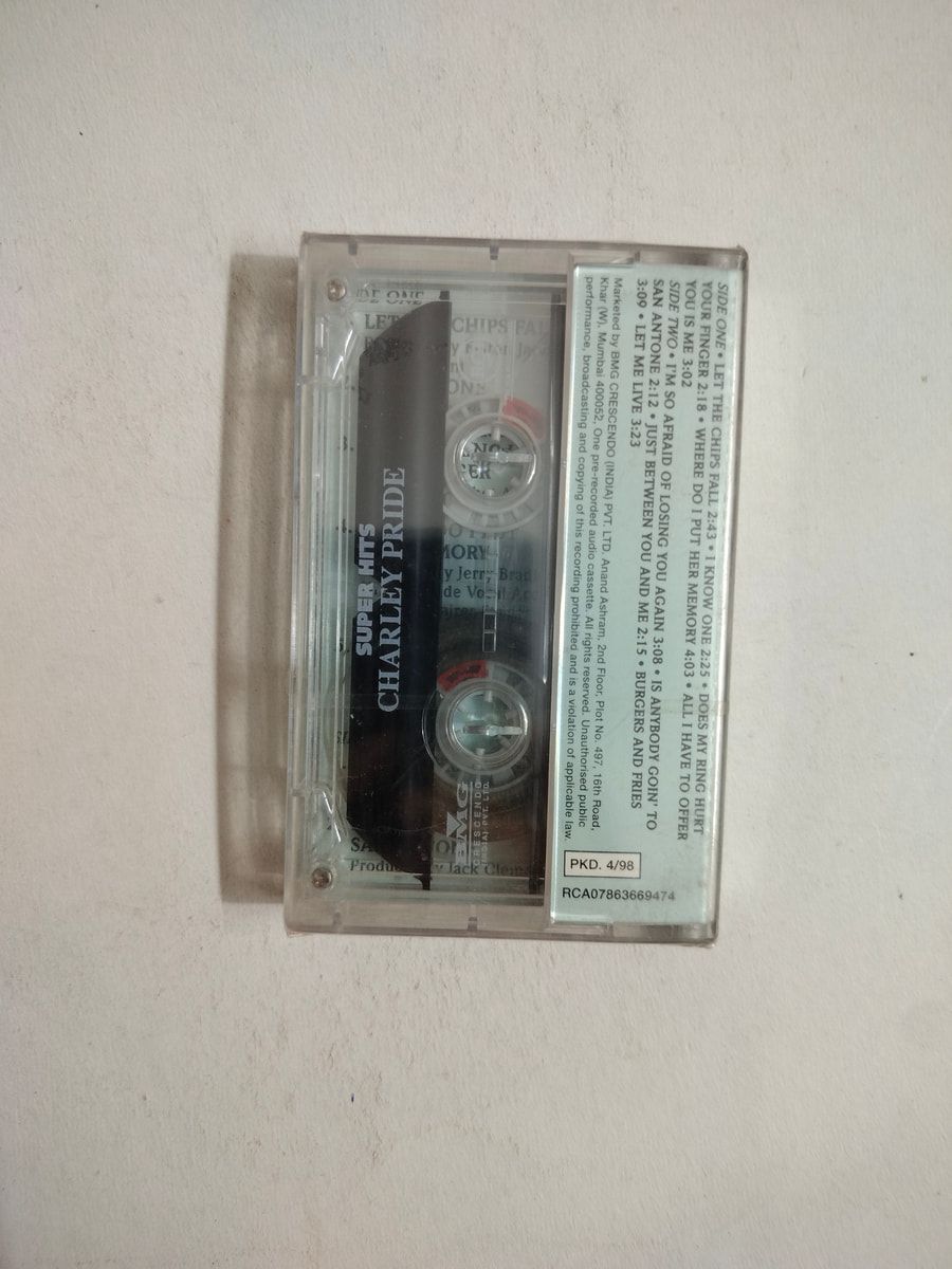 Charley Pride’s Super Hits on cassette—gentle wear, timeless sound. Buy Super Hits cassette in Very Good Minus condition Today!