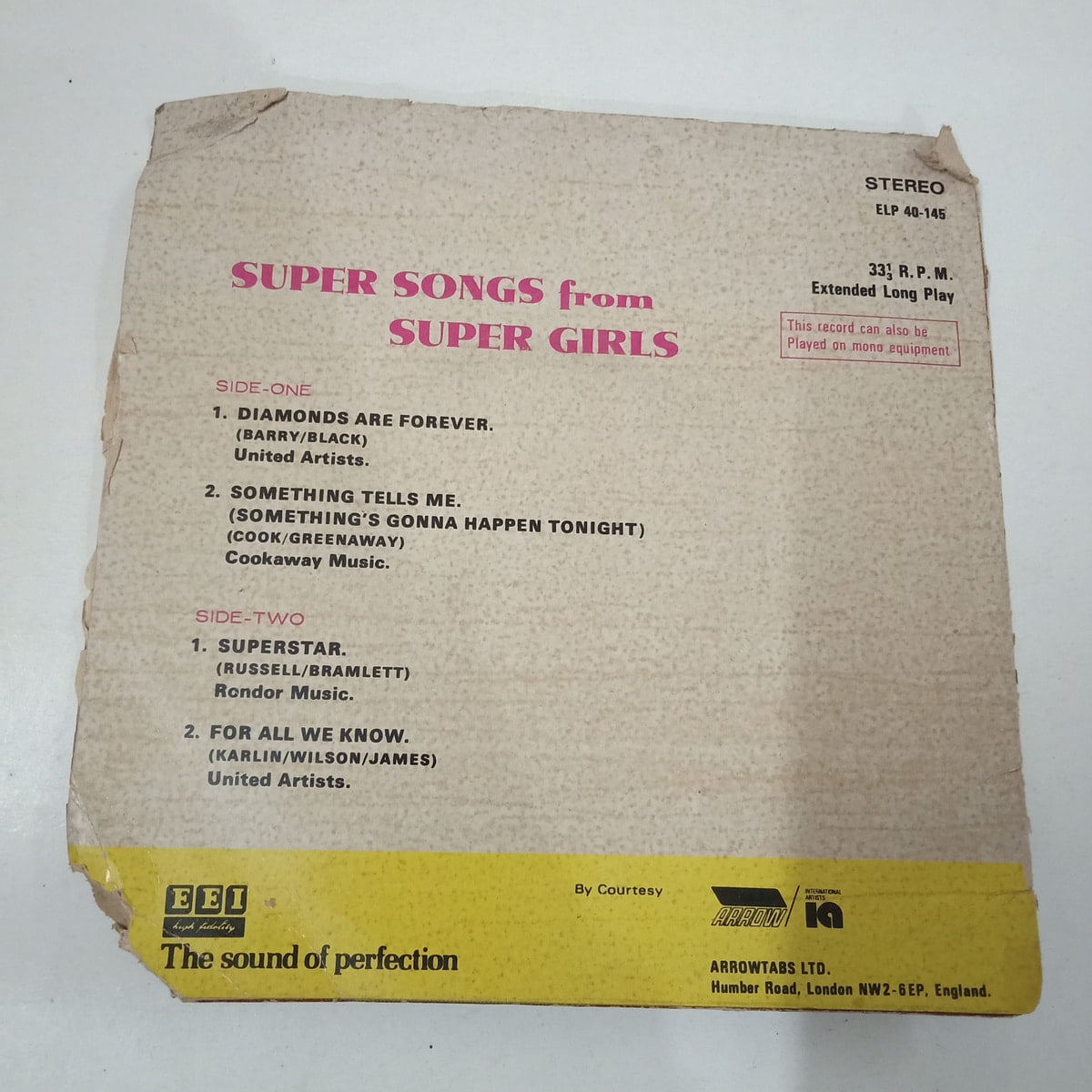 Stashed away since 1977, this Super Songs from Super Girls EP isn’t winning beauty contests—both cover and grooves are in Poor condition. But that just means it’s packed with honest stories: of wild parties, late-night DJ discoveries, and every fan who sang along. The surface wear adds a raw texture to each track, making every pop and crackle a piece of music history. It’s affordable nostalgia for crate-diggers who don’t mind a rough ride—just pure female-fronted power, straight from the heyday of vinyl. Looking for an offbeat collectible to show some character on your shelf? Buy Super Songs from Super Girls vinyl EP in Poor condition Today! Authentic, imperfect, and waiting for a fresh spin.