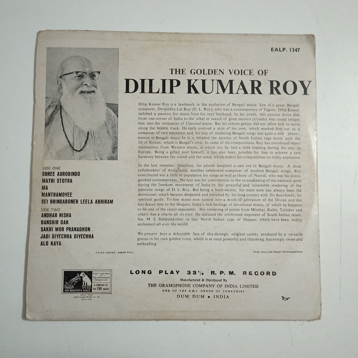 A rare 1970 Bengali LP treasure—Buy The Golden Voice Of Dilip Kumar Roy vinyl LP in Very Good Minus condition Today!