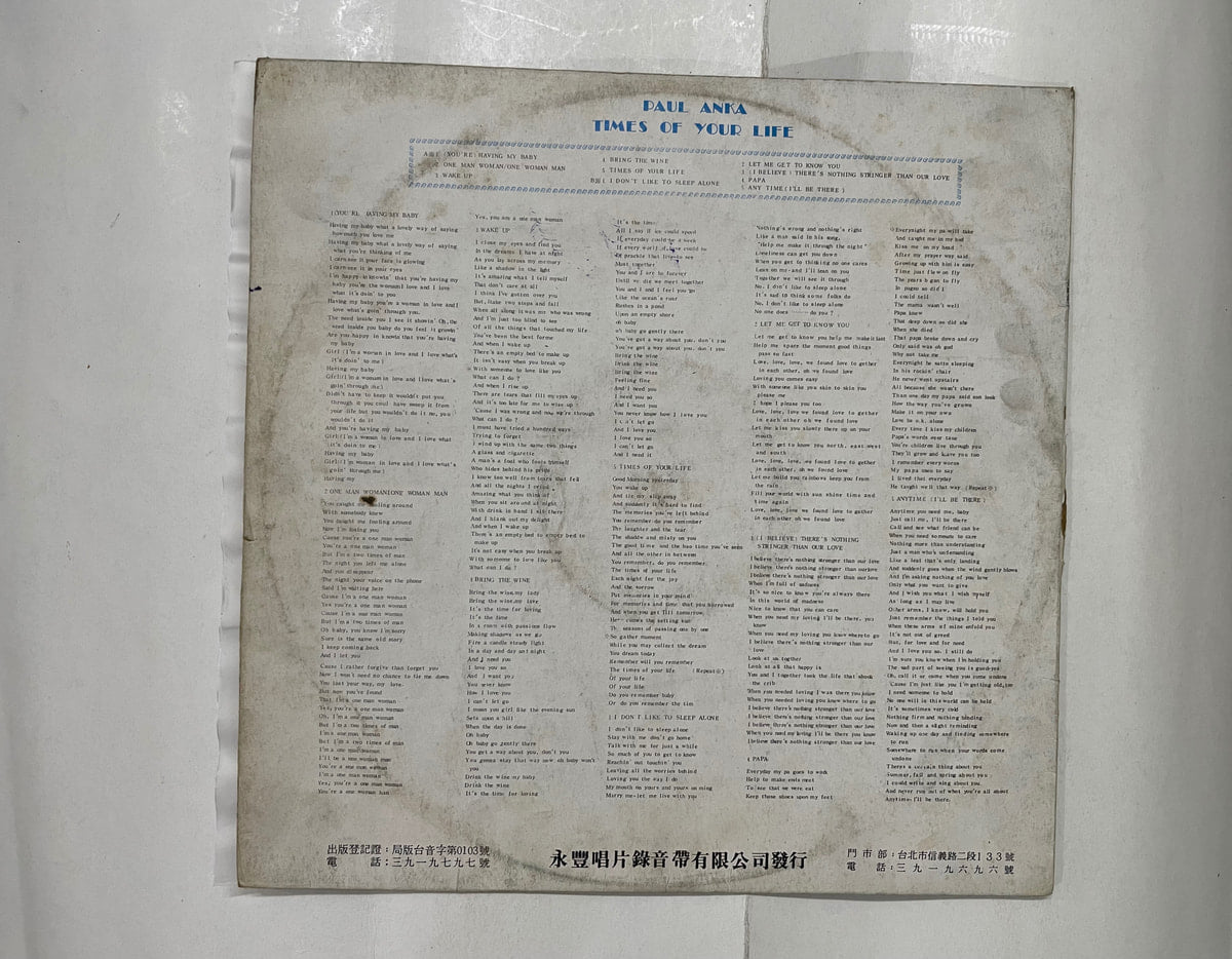 Times Of Your Life – Paul Anka Used Vinyl LP Record